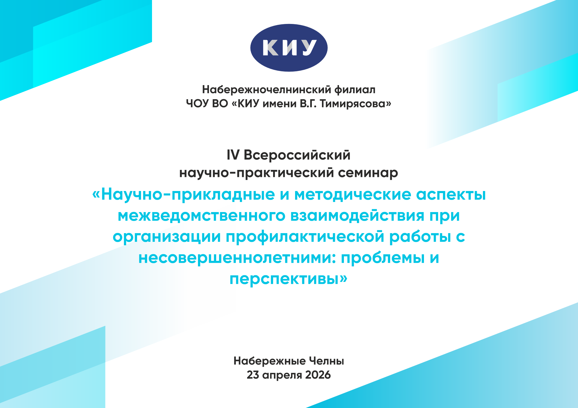 Семинар проводится на базе Набережночелнинского филиала Частного образовательного учреждения высшего образования «Казанский инновационный университет имени В.Г. Тимирясова (ИЭУП)» по адресу: Республика Татарстан, г. Набережные Челны, пр. Вахитова, д.4 (53/02).