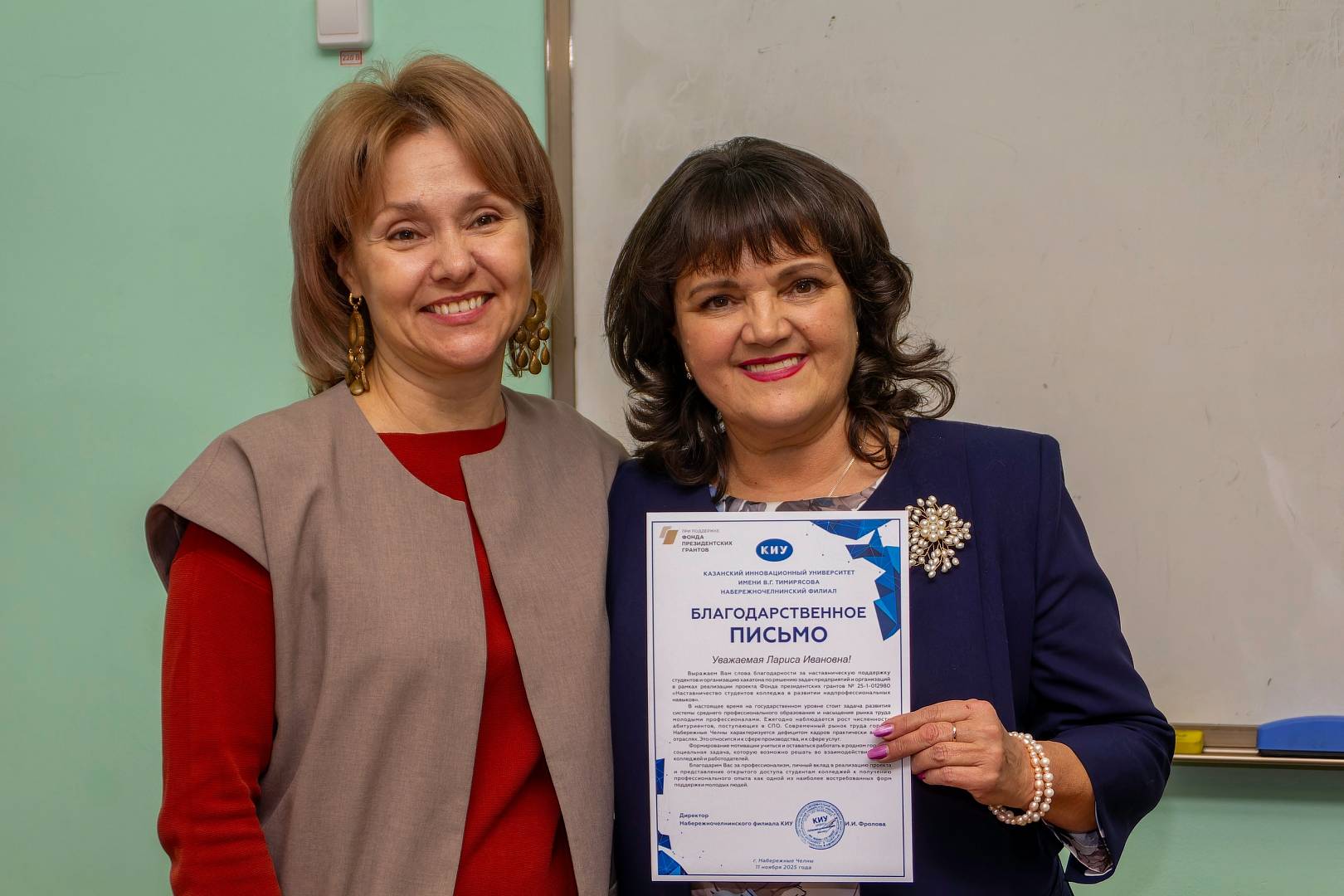 Особая благодарность заместителю директора по учебно-воспитательной работе Поповой Ларисе Ивановне и коллективу колледжа за организацию и поддержку. Этот проект является примером успешного взаимодействия колледжей, вузов и работодателей в рамках профессионального образования и мотивации молодых специалистов оставаться работать в родном городе.