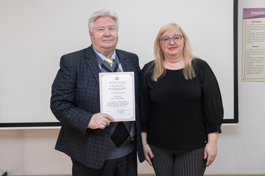 Почетной грамотой Министерства строительства, архитектуры и жилищно-коммунального хозяйства Республики Татарстан за вклад в строительство, реконструкцию и капитальный ремонт объектов образования в Республике Татарстан награжден заместитель директора по общим вопросам и строительству Пыхалов Олег Георгиевич.