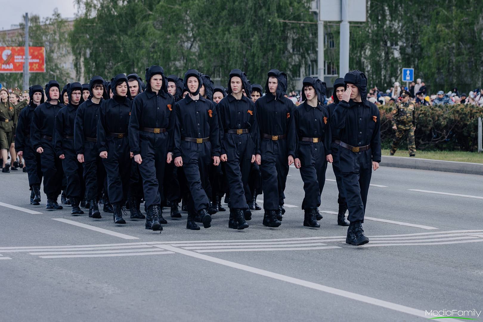 Студенты Набережночелнинского филиала КИУ приняли участие в параде Победы, выразив уважение к ветеранам и их семьям. В форме советских танкистов они промаршировали в составе парадных расчетов.