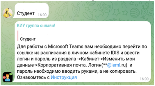 Ссылка на чат технической поддержки размещен на странице авторизации в личный кабинет студента, на сайте Информационные системы и сервисы КИУ им. В.Г. Тимирясова, а также в фойе висят QR коды со ссылкой на чат технической поддержку.